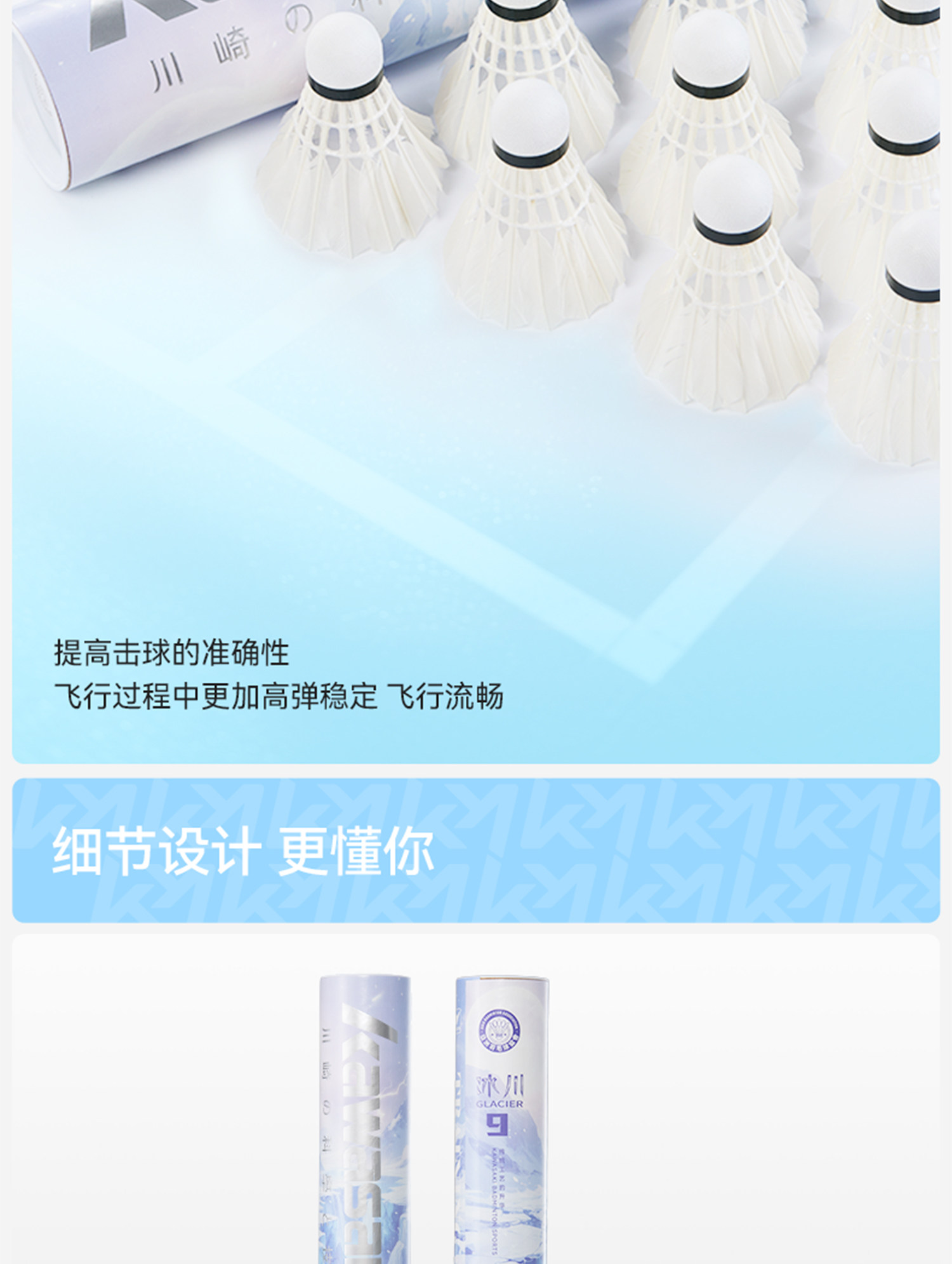 川崎冰川9号羽毛球鸡毛球耐打天然羽毛正品防风飞行稳定训练用球